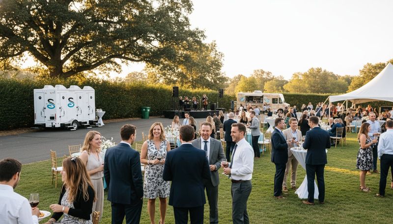 Maintain professional standards with corporate event restroom rentals. Premium trailers with luxury features support brand image and attendee satisfaction.