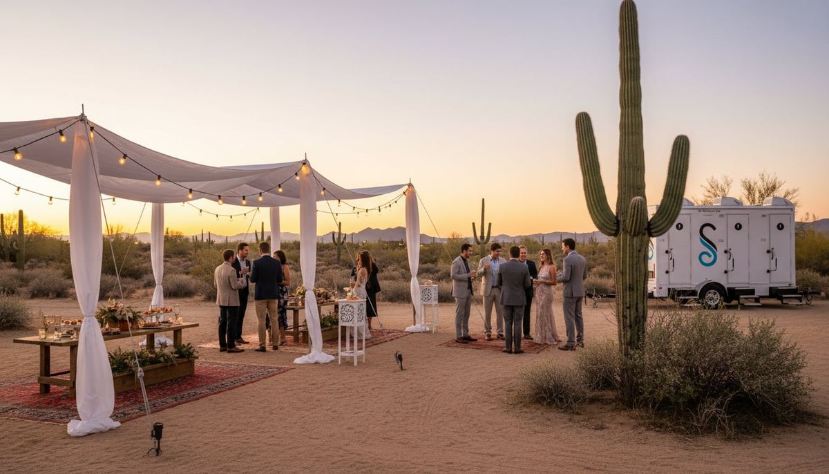 Desert and arid regions from Arizona to Nevada, New Mexico to Southern California host weddings, corporate retreats, and festivals in distinctive landscapes. Desert event restroom rentals must address extreme heat, intense sun exposure, and dry climate challenges that these unique environments create requiring specialized equipment and operational approaches.